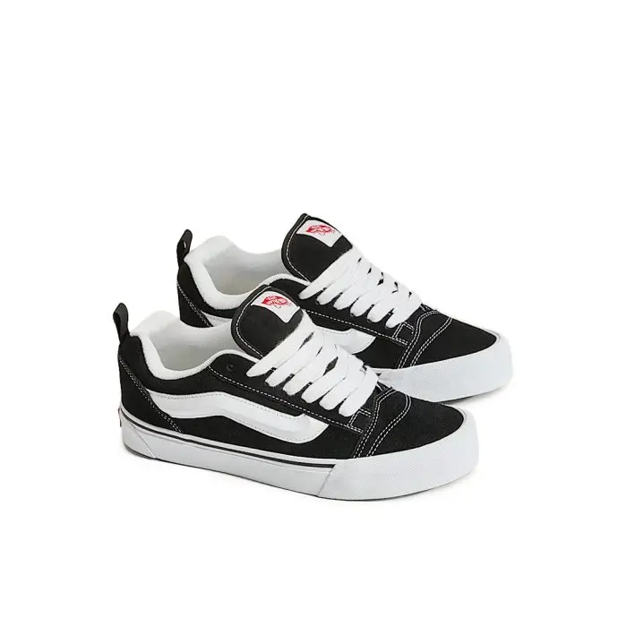 حذاء رياضي من الجلد الأسود والأبيض من فانز كنو سكول