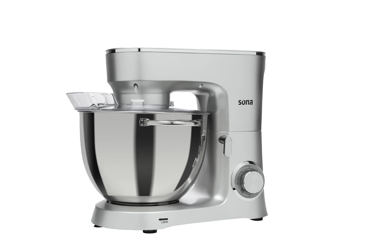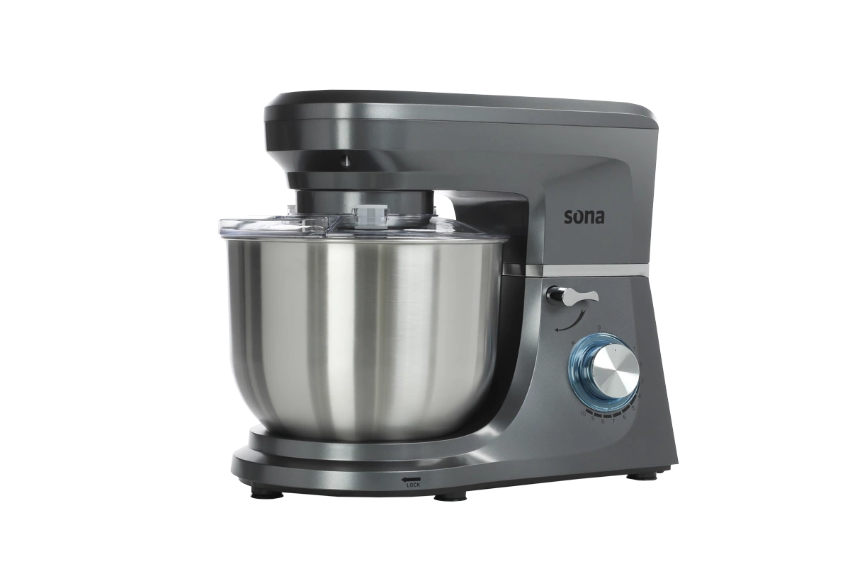 عجانة سونا سعة 6.5 لتر وقوة 1300 واط 10 سرعات بلون رمادي تشمل 3 ملحقات للعجن والخفق