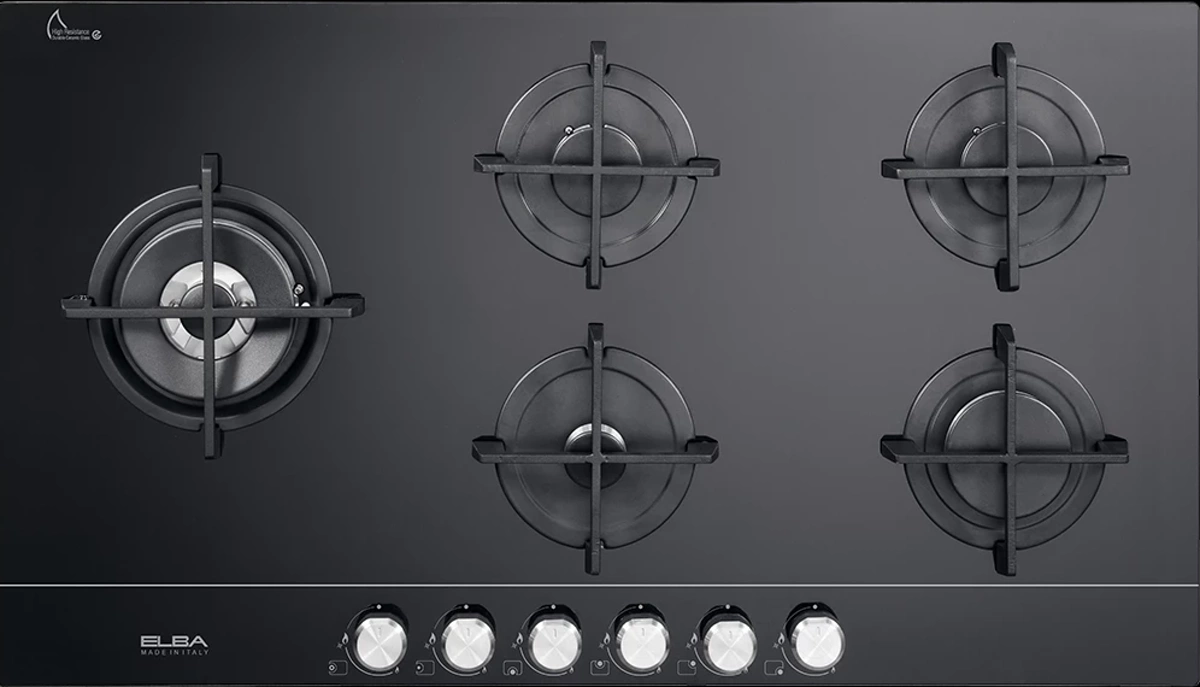 طباخ غاز البا بلت ان 90 سم فايتوسيراميك 5 شعلات مع مناصب سكب سميكة