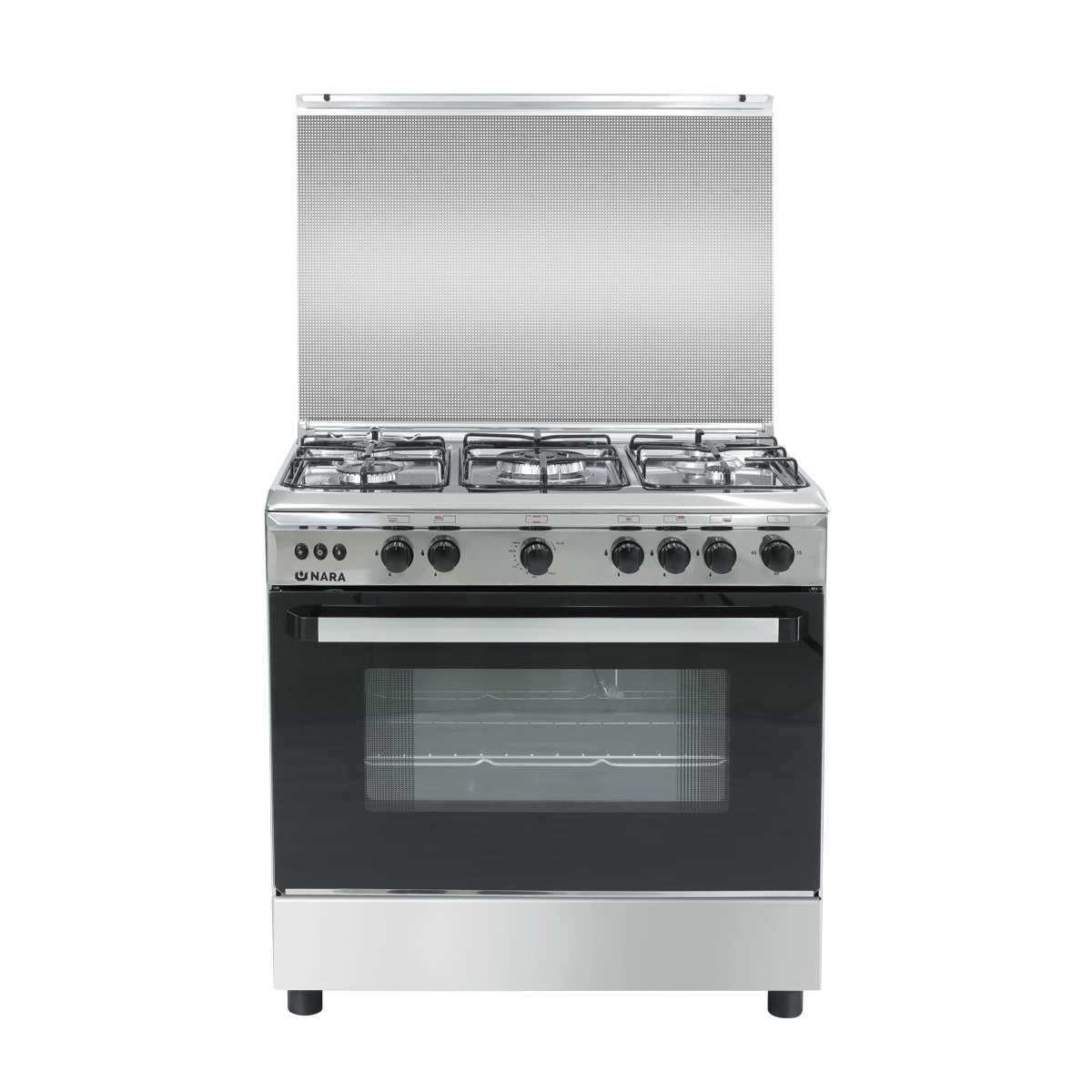 طباخ غاز نارا 80 سم نظام امان كامل زجاج مزدوج اسود ستانليس ستيل لامع