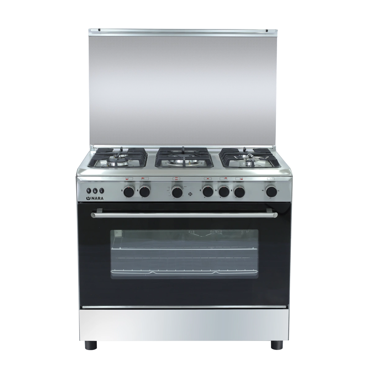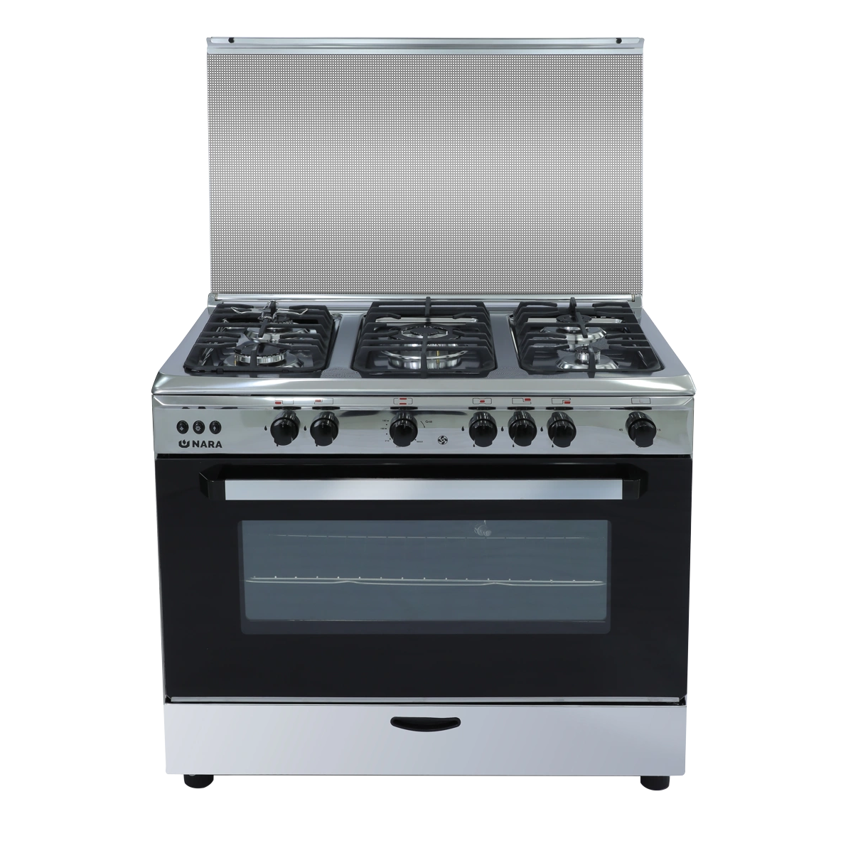 طباخ غاز نارا 90 سم امان كامل ستانليس ستيل لامع مع مروحة ومناصب سكب سميكة