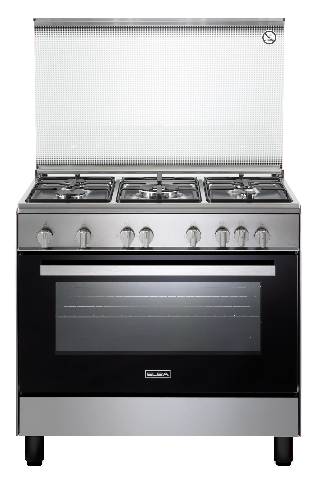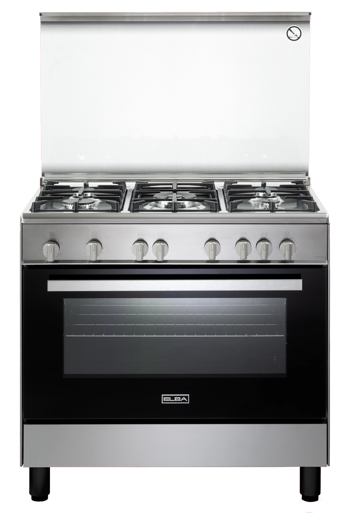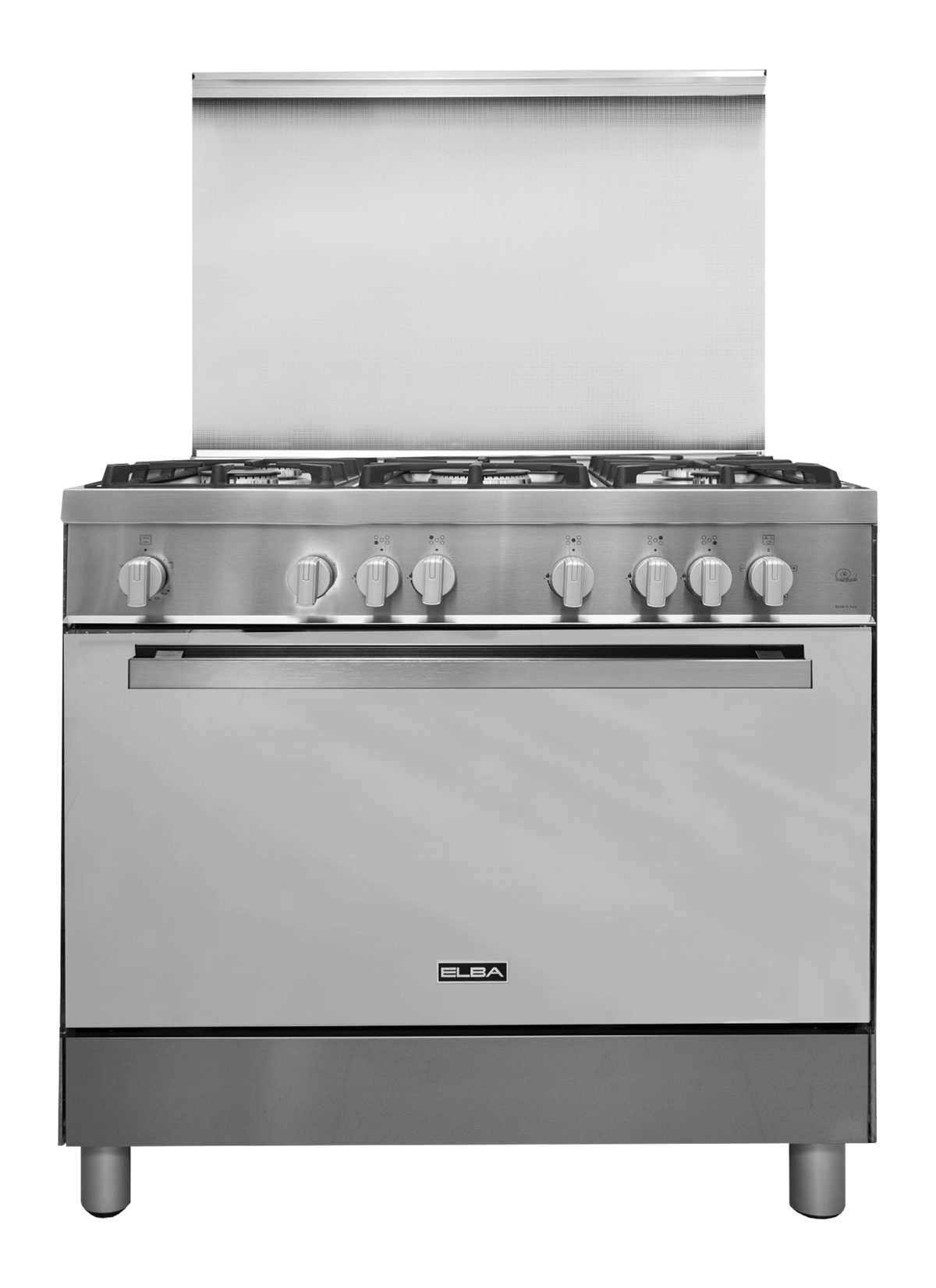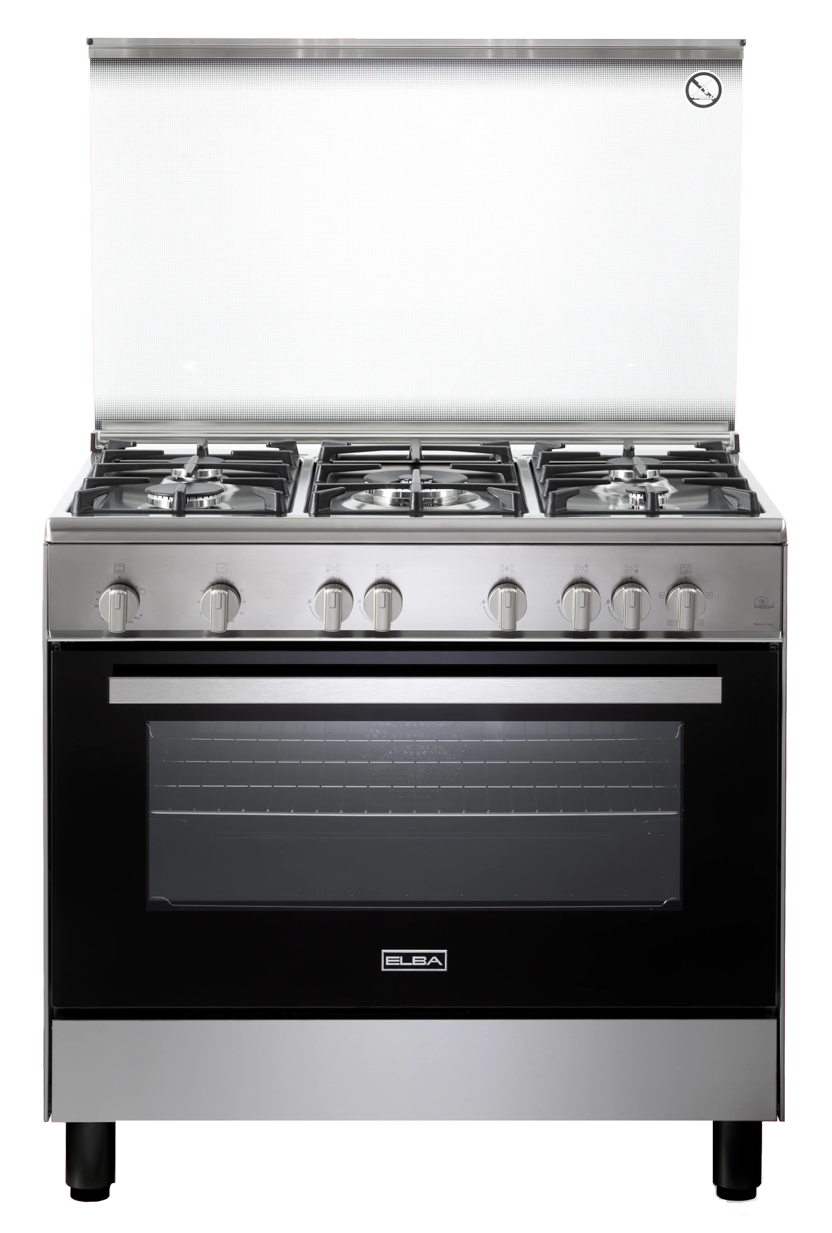 طباخ غاز إلبا 90 سم تصميم ستانليس ستيل 5 شعلات مناصب عريضة مطلية نظام امان كامل