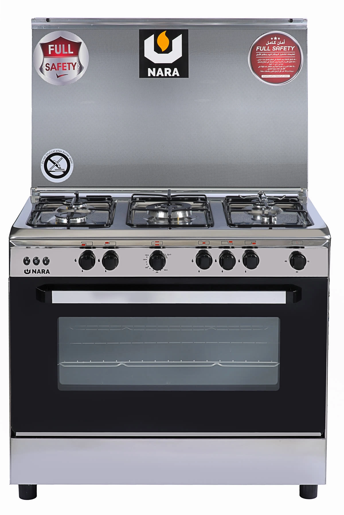 طباخ غاز نارا 90 سم نظام امان كامل ستانليس ستيل مع مروحة